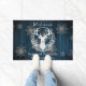 Rustic Watercolor White Reindeer Personalise Blue Doormat