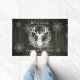 Welcome guests with festive charm using this personalised Green Rustic Watercolor White Reindeer Christmas doormat. Showcasing a graceful white reindeer encircled by a filigree wreath, the design rests on a weathered wood background sprinkled with soft grey snowflakes. The warm “Happiest Holidays” greeting in modern typography can be customised with your family name, creating a heartfelt seasonal accent that’s uniquely yours. Blending farmhouse style with a cosy winter theme, this durable mat makes a perfect addition to your Christmas outdoor accents, offering both style and function for the holiday season.