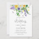 This is a lovely fresh and rustic summer wildflower themed wedding invitation. The design features a variety of spring wildflowers including yellow daffodils, purple pansies, clovers, lavender, sweetpeas, dandelions, tulips and fern and ivy greenery.