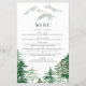 Customisable woodland menu card featuring watercolor illustrations of trees, mountains and matching green paper. This rustic forest menu card is perfect for spring and fall weddings, bridal showers, baby shower, birthdays and similar events. Personalise by adding names and menu details.