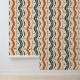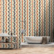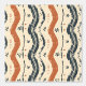 This artwork features a rustic, hand-drawn pattern of wavy lines and simple floral motifs. The design uses a warm, earthy colour palette of terracotta and deep blue against a cream background, evoking a sense of natural, organic movement. The irregular, textured lines and shapes give the pattern a handcrafted, artisanal feel, while the rhythmic flow of the waves creates a soothing and dynamic visual effect. The scattered floral and geometric elements add subtle detail and charm to the overall composition.