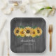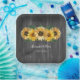 Personalise a unique paper plate for wedding reception guests with a set of Rustic Weathered Sunflower Wedding Paper Plates. Paper Plate design features a rustic wooden background with an elegant bouquet of sunflowers. Personalise with the groom and bride's names along with the wedding date. Additional wedding stationery available with this design as well.
