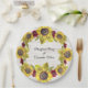 Rustic Weathered White Wood bride and groom names, country yellow sunflowers paper plate