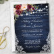 Rustic Blue Wood String Lights Lace Burgundy Watercolor Floral Wedding Invitation