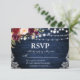 Rustic Wedding Blue Wood String Lights Lace Watercolor Burgundy Floral RSVP Card