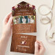 Rustic Wedding Burgundy Floral Wood 3 Photo All In One Invitation
