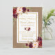Rustic Wedding Burlap Watercolor Burgundy Floral Gold Wedding Invite