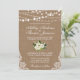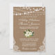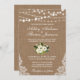 Rustic Wedding Burlap Lace String Lights with Watercolor Green and White Floral Invitation