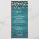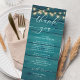 Add a personal and thoughtful touch to your wedding celebration with this modern rustic romance wedding dinner place setting thank you card. Designed to be placed at each guest’s seat, this elegant piece of wedding stationery helps you express gratitude and create a warm, welcoming atmosphere. With its modern minimalist elegant rustic teal blue green wood string lights theme, it’s perfect for enhancing your wedding dinner, reception, or rehearsal dinner décor. Customise with your names, wedding date, or a special message to make it truly yours.
