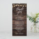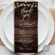 Add a personal and thoughtful touch to your wedding celebration with this modern rustic cottage brown wood, party string lights dinner place setting thank you card. Designed to be placed at each guest’s seat, this elegant piece of wedding stationery helps you express gratitude and create a warm, welcoming atmosphere. With its [DESIGN DETAIL—e.g., modern script, floral accents, minimalist layout], it’s perfect for enhancing your wedding dinner, reception, or rehearsal dinner décor. Customise with your names, and / or a special message to make it truly yours. A beautiful keepsake for guests to remember your day, this card is a stylish detail that complements rustic cottage celebrations.
