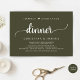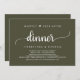 Mark the beginning of your forever with elegance using our contemporary-themed wedding elopement celebration invitation card, "Happily Ever After Dinner". Perfect for couples extending their joyous occasion, this invitation exudes sophistication with a hint of playfulness, setting the stage for a memorable event. Adorned with a timeless olive green theme, it adds a touch of refined charm to your festivities. Crafted by TeeshaDerrick, this invitation promises to beautifully capture your love story.