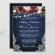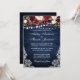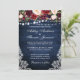 Rustic Blue Wood Lace Lights Burgundy Watercolor Floral Wedding Invitation