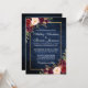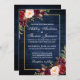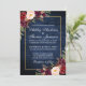 Rustic Wedding Gold Burgundy Floral Blue Wood Invitation