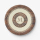 Rustic Wedding Heart Monogram in DarkWalnut Circle Paper Plate