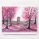 Rustic wedding love couple cherry blossoms tree artwork. Wedding anniversary, wedding invitations, Valentine’s Day. Romantic couple, bride and groom, first date, first love. Pink cherry blossoms flowers tree. Home decor. Girly chic decor.