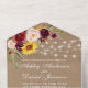 Rustic Wedding, Watercolor Mixed Floral, String Lights Kraft Wedding All In One Invitation with RSVP Card includes burgundy roses, pink roses, red roses, sunflowers and botanical greenery.