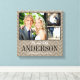 Add three of your favourite wedding photos to create a beautiful unique photo collage canvas art print. Personalise the design with your family name monogram and wedding date or other custom text. Click Customise It to move photos or change text fonts and colours to create a unique one of a kind design. Background has a printed faux burlap texture to match any neutral rustic decor. Great gift for family and friends!