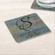 Worn paint wood look background personalised coasters for the cowboy, farm, or rustic wedding or party. These coasters are perfect for the rustic wedding or any party with a country, farm, or western theme. The background is a photo I took of the worn paint on a vintage set of bookshelves from an old school. It has a monogram in a distressed font to match the rustic look. Under that there is the name of the happy couple, the date and the location. Everything can be customised to personalise it for your own needs.