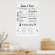 This poster was great to inform our guests about the timeline of the big day. We had it outside the banquet hall for everyone to see as they arrived. The font, color, and size were legible, pretty, and just right.