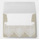 This custom wedding invitation is perfect for a rustic wedding or vintage themed wedding. It has rustic design elements with it's PRINTED beige linen background and vintage lace damask pattern, yet is sophisticated with the PRINTED purple satin ribbon and square diamond brooch which looks like costume jewellery. Elke Clarke © PLEASE NOTE ALL ELEMENTS ARE PRINTED ON THE FLAT SURFACE. A fun handwriting script font for the text of grey and purple works well with the trendy look of beige linen or burlap like fabric paired with white lace. It adds a touch of whimsy to this romantic design. For different colour ribbon please contact luxuryweddinginvitations@gmail.com