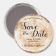 The magnet features a printed wood grain cut slab disc, creating the illusion of a beautiful wooden surface. This design element adds a touch of natural elegance to your Save the Date announcement, perfectly capturing the essence of your rustic wedding theme.