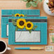 Rustic Wedding Sunflower Teal n Grey Wood Envelope
