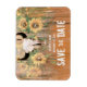 Rustic wedding sunflowers save the date announcement rectangular refrigerator magnet. Western rodeo bull skull with horns country floral texture. Barn wood vintage brown yellow green colours. Farmhouse cowboy style design. Image copyright Marg Seregelyi Photography.