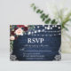 Rustic Wedding Blue Wood String Lights Lace Watercolor Burgundy Marsala Blue Floral RSVP Card