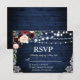 Rustic Wedding Wood Blue Burgundy Floral RSVP Card