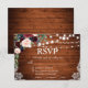 Rustic Wedding Wood String Lights Lace Watercolor Burgundy Marsala Blue Floral RSVP Card with meal choice