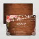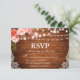 Rustic Wedding Wood Coral Floral Lights Lace RSVP Card