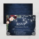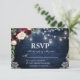 Rustic Wedding Blue Wood String Lights Mason Jars Lace Watercolor Burgundy Marsala Blue Floral RSVP Card