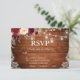 Rustic Wedding Wood String Lights Mason Jars Lace Watercolor Burgundy Marsala Floral RSVP Card with Meal choices