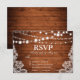 Rustic Wedding Wood String Lights Lace RSVP w/Meal Card