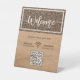 Rustic Welcome Script WIFI QR Code Wood Grain Pedestal Sign