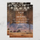This rustic western barn wood wedding invitation featuring a western ranch mountains scene and string lights on a barn wood background can be personalized with your information in stylish typography. With all your special wedding day information on the reverse, including your RSVP, accommodation, and additional details. Designed by Thisisnotme©