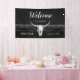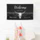 Welcome rustic wedding, western black and white bull cow skull country cowboy dinner reception banner sign. Personalised farmhouse style. Cool old wild west vintage antique inspired. Modern, trendy farm animal design. Custom script. Image copyright Marg Seregelyi Photography.