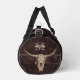 This rustic country bull skull duffel bag features a trendy western cowboy old texture grunge monogram. Customise this cool brown beige farmhouse inspired wild west antique style design. Modern vintage farm animal. Image copyright Marg Seregelyi Photography.