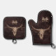 Rustic Western Brown Beige Old Bull Skull Monogram Oven Mitt & Pot Holder Set