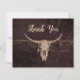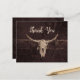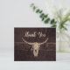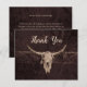 This budget flat thank you card features a rustic brown texture bull cow skull western country rodeo cowboy wedding theme. Farmhouse style, old wild west vintage antique. Cool, trendy, modern farm animal customised design. Image copyright Marg Seregelyi Photography.