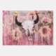 Rustic Western Bull Skull Pink Yellow Sunflowers Wrapping Paper Sheet