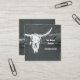Rustic Western Charcoal Grey White Bull Cow Skull Square Business Card