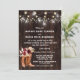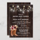 Charming Rustic Western Cowboy Wedding card design. It features watercolor cowboy and cowgirl boots with pampas grass, dried palm leaves, lunaria, burgundy flowers, string lights, on an old wood barn background. Use Personalise it tool to add your info. For matching items, please, visit my Western Country Wedding Collection.