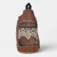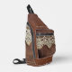 Delightfully rustic backpack sling bag has a dark leather background and a faux antique lace panel with applied pearls. The lace panel is also on the sides. Personalise it with the easy to use template provided. The font is completely customisable should you want to use a different style type face.