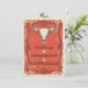 Great for any Western Themed Party this invitation features a weathered animal skull against a worn grungy red background with decorative rusted frame work. Perfect for a cowboy or cowgirl party, retirement party or birthday. Hand drawn illustration by McBooboo.