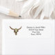 Western country cowboy brown wood wedding save the date return address labels. Rustic country bull skull. Farmhouse style design. Personalise your typography. Wild west antique vintage unique. Cool, old, trendy farm animal. Image copyright Marg Seregelyi Photography.