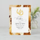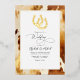 Set the tone for your Western-themed wedding with this stunning invitation in accents of rust, ivory, and luxe foil. It features a cowhide-inspired background and luxurious real gold foil horseshoes. Perfect for rustic, cowboy, or country-style weddings, this design captures the essence of Western charm and elegance. Fully customisable to suit your special day.