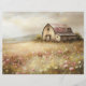 This charming painting depicts a rustic white barn nestled in a field of vibrant wildflowers, evoking a peaceful countryside atmosphere. The soft brushstrokes and warm tones create a nostalgic, farmhouse-style scene perfect for country and rustic decor.
