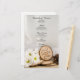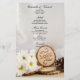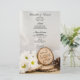 Customise the natural Rustic White Daisies Woodland Wedding Menu with the details of the meal that you will serve at your casual yet classy bridal shower luncheon, post wedding brunch or marriage reception dinner by adding the salad or first course, entree or second course and dessert or third course. This charming custom outdoor woods or forest inspo wedding menu features a nature style photograph of a bouquet of white daisy flower blossoms, wood slice with the word LOVE burned on it, brown pine cone and white bridal veil with a burlap and white satin background.