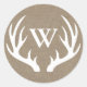 Rustic White Deer Antlers Burlap Initial Letter Classic Round Sticker